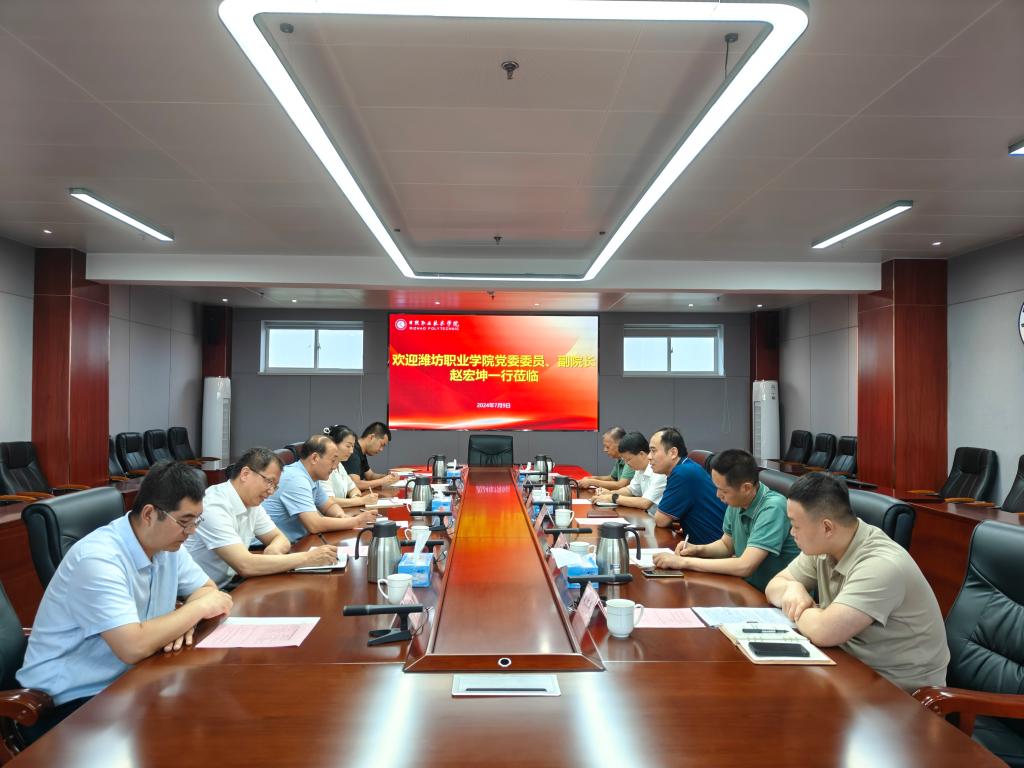 7月9日,学院党委委员、副院长赵宏坤,党委委员、办公室(统战部)主任(部长)刘志艳带领办公室有关科室负责同志到日照职业技术学院考察交流。日照职业技术学院党委委员、副院长徐锡权,党委委员、党委(学院)办公室主任毛怀东及相关处室负责同志参加座谈交流。 徐锡权对赵宏坤一行的到来表示欢迎,首先介绍了学院的基本情况,并对学院的历史沿革、办学规模、办学理念、办学特色等方面作了重点介绍。 赵宏坤对日照职业技术学院近年来的高质量发展给予了高度赞赏,...更多 -