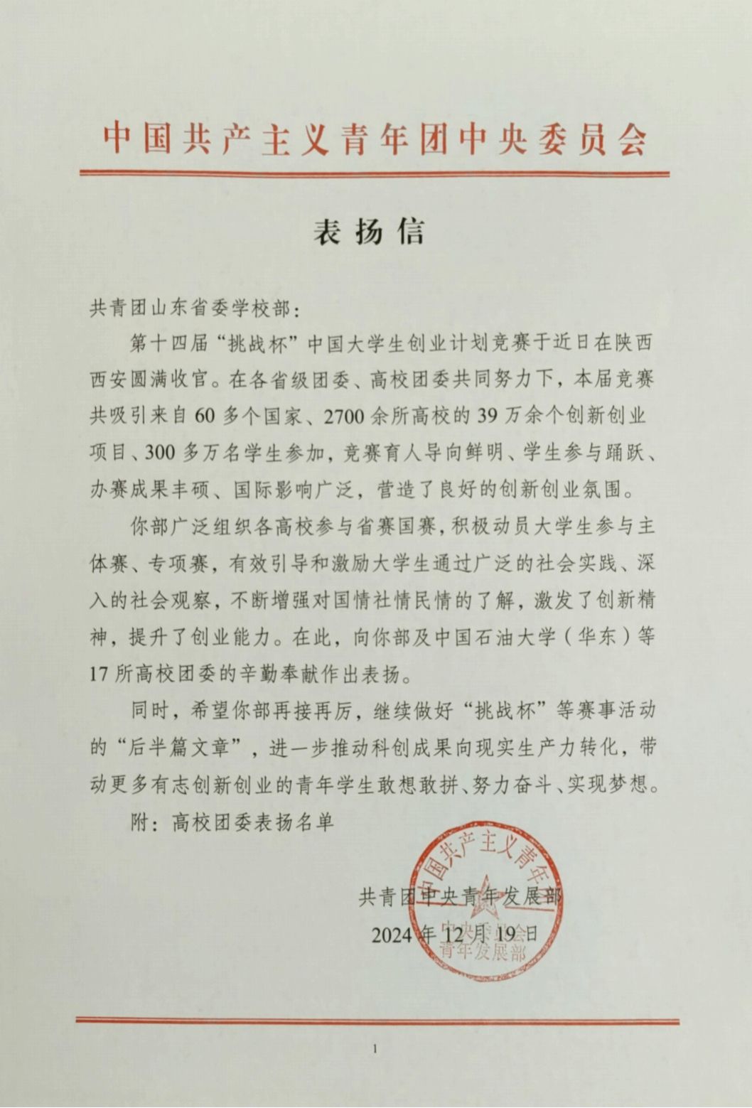 近日,学院收到共青团中央青年发展部发来的表扬信,对必赢第十四届“挑战杯”中国大学生创业计划竞赛中取得的优异成绩进行表扬。“挑战杯”系列竞赛被誉为中国大学生科技创新创业的“奥林匹克”盛会,在中国高等教育学会所发布的《全国普通高校大学生竞赛排行榜》中位列前三,是教育部官方认可的最具含金量与参赛价值的创新创业赛事之一。习近平总书记多次强调要加快建设科技强国,更加重视青年人才培养,让更多的青少年心怀科学梦想、...更多 -