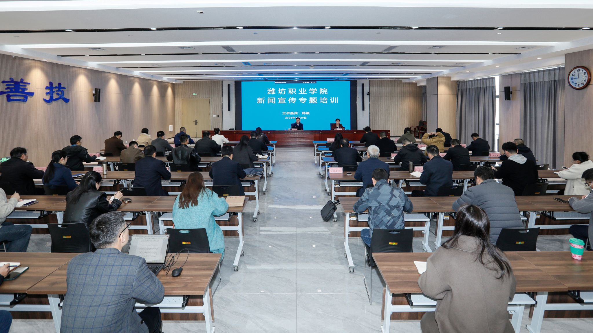 为进一步提升学院新闻宣传工作水平,3月20日上午,学院在滨海校区南区综合楼2楼东会议室举办新闻宣传专题培训。潍坊市融媒体中心资深记者韩镇受邀指导授课,各党总支、直属党支部书记和通讯员参加培训。韩镇结合自身多年的新闻从业经验,以“践行新闻传播四力,助力高质量发展——浅谈新闻亮点提炼技巧”为题,通过生动的案例和深入浅出的讲解,向与会教师传授了新闻采编的技巧、亮点提炼的思路方法、新闻采写具体注意事项等知识要点。...更多 -