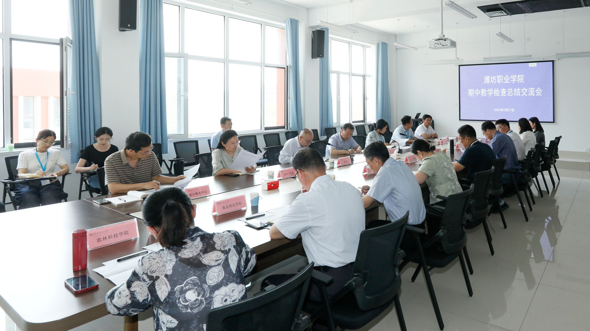 5月27日下午,学院期中教学检查总结交流会在滨海校区南区智泽1号楼国际商务学院会议室举行。学院党委副书记贺志强,宣传部部长鞠桂芹出席会议,各二级学院(中心)主要行政负责人、教学负责人,教务处、教师工作部、团委学生工作处主要负责人,教务处相关人员参加会议。鞠桂芹主持会议。贺志强对学院期中教学检查、教学督导工作、各教学部门前期教学工作推进落实给予了充分肯定。他要求,各教学部门要抓紧抓好六项工作:一是按照升本要求做好师资调配及教学档案整理等教学工作,...更多 -