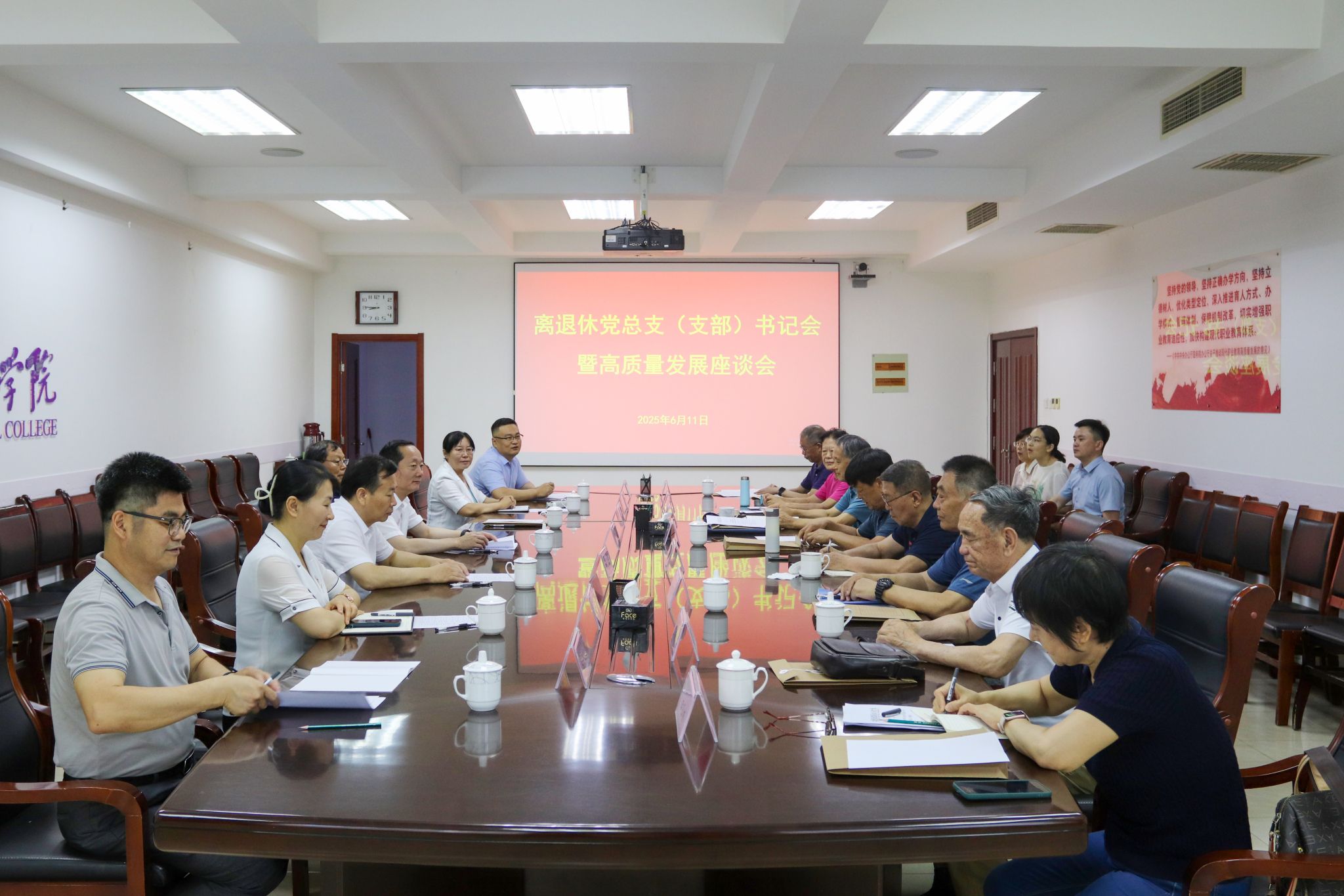 6月11日上午,学院在奎文校区11号楼211室召开离退休干部党总支(支部)书记会。学院党委书记王浩,离退休党总支书记刘贞富,党委副书记贺志强,党委委员高凌云,党委委员、办公室(统战部)主任(部长)刘志艳出席会议。会议由学院党委委员、组织人事处(离退休工作处)处长于涛主持,各离退休党支部书记和老干科相关人员参加会议。会上,集体学习了《深入践行人民城市理念 积极参与城市建设和治理——习近平总书记给“老杨树宣讲汇”...更多 -