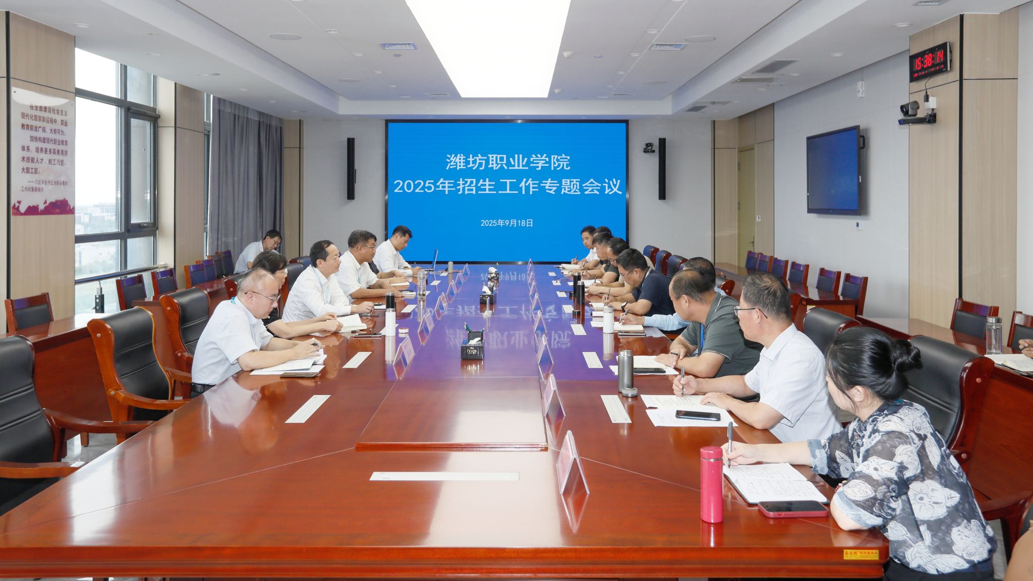 9月18日下午,学院在滨海校区召开2025年招生工作专题会议,党委书记王浩,院长韩瑞东,副院长陈美霞,党委委员、宣传部部长鞠桂芹出席会议,各二级学院、教务处、招生就业处等部门负责同志参加会议。韩瑞东主持会议。王浩讲话,他充分肯定了2025年招生工作的成绩。他指出,在招生规模扩大背景下,学院各专业招生实现一次性录满,生源质量稳步提升,为学院改革、创新及高质量发展创造了有利条件。他强调,在当前生源竞争激烈、人民群众接受高质量职业教育愿望越来越迫切的背景下,...更多
