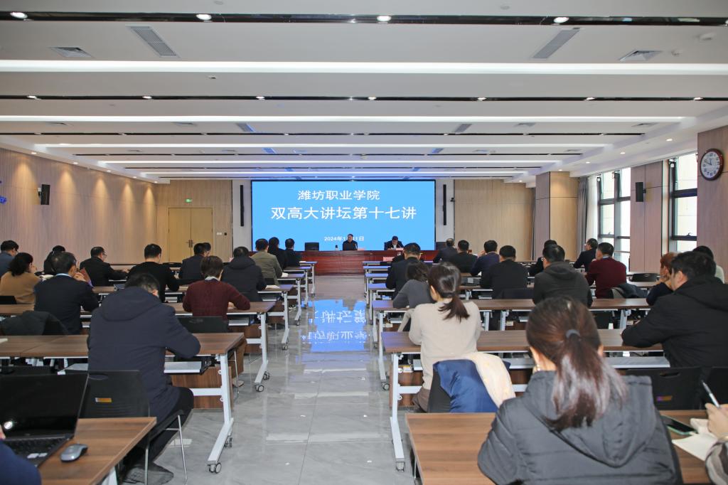 1月11日,学院在滨海校区举行“双高大讲坛”线下第十七讲。北京外国语大学教授、中国职业技术教育学会副会长孙善学作《产教融合理论与实践》专场报告。学院党委副书记韩瑞东,党委委员、副院长贺志强,学院领导李瑞昌,副院长陈美霞,党委委员、组织人事处处长付一明,党委委员、办公室(统战部)主任(部长)任培华出席活动。各部门、二级学院党政负责人及教学副院长,双高建设项目责任人及双高办成员等70余人听取报告。韩瑞东主持报告会。...更多