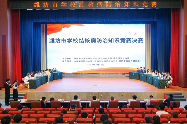 近日,潍坊市学校结核病防治知识竞赛决赛在山东第二医科大学浮烟山校区举行。此次大赛由市卫健委、市教育局、共青团潍坊市委联合举办,来自全市38所大中专院校(含本科、职业院校、技工院校)的114名选手参加本次大赛。 决赛采用笔试和竞答的方式,主要考察结核病防治相关法规规章、国家防治政策措施、基本防治知识等内容,笔试前8的代表队进入竞答环节(包含必答题、抢答题和风险题三部分)。经过大赛激烈角逐,必赢代表队从全市100多名选手中脱颖而出,...更多 -