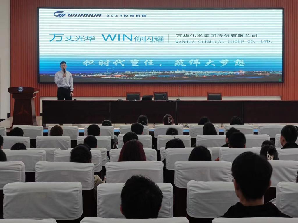 为做好2025届毕业生实习就业工作,进一步提高学生实习就业质量,化学工程学院结合前期企业用工需求和行业发展现状调研,统筹安排,开展2024年春季优质企业宣讲进校园活动。活动邀请行业龙头企业万华化学集团股份有限公司、齐翔腾达股份有限公司到学院进行宣讲,应用化工技术、分析检验技术等专业2025届毕业生共计200余人参加宣讲会。 会上,企业招聘人员就企业发展历程、企业文化、岗位设置、实习管理、薪资待遇等方面做了...更多 -