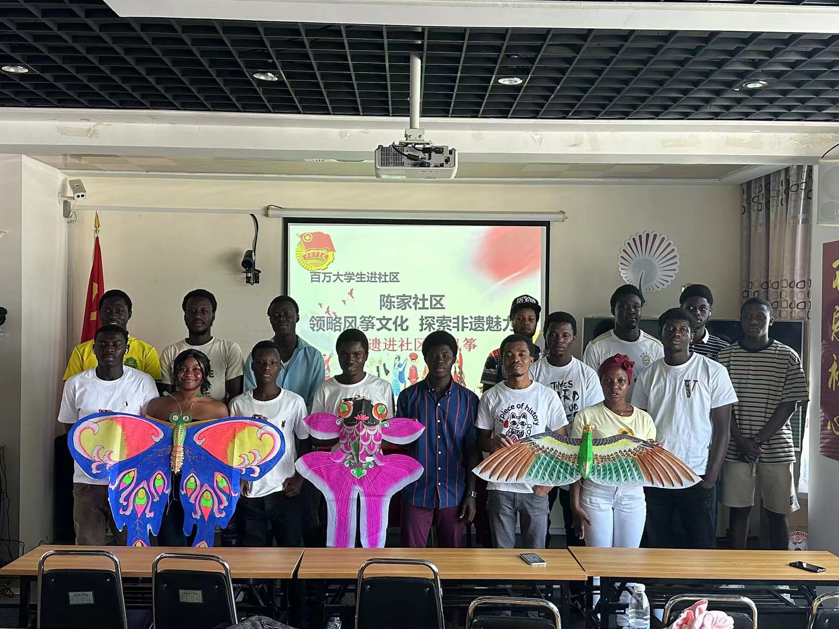 7月31日下午,国际教育学院组织来自加纳的16名国际学生走进陈家社区,参加非遗风筝文化体验活动,感受潍坊当地特色风筝文化的魅力。 活动伊始,来自潍坊风筝博物馆的工作人员介绍了风筝的起源、种类及制作过程,让国际学生了解了风筝扎制和放飞的相关知识。随后,他们带领国际学生们近距离感受风筝的制作工艺,向大家讲述了风筝背后的中国故事和中国智慧。活动后,国际学生接受媒体采访。他们表示,通过非遗课堂,了解了风...更多