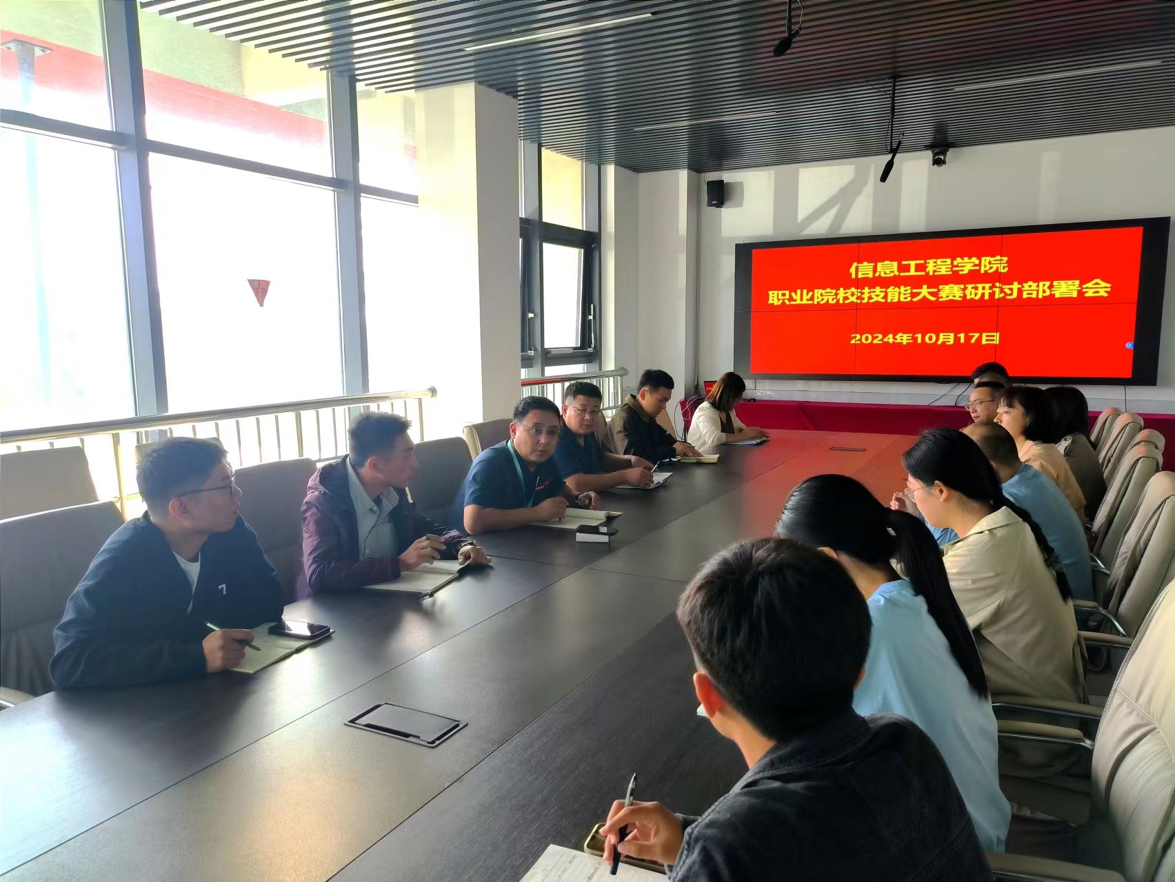 为积极应对职业院校技能大赛改革,激励参赛师生积极备赛,10月17日,信息工程学院在智泽1号楼大学生活动中心召开职业院校技能大赛研讨部署会,信息工程学院主要负责同志、分管教学负责同志及各赛项指导教师参加。会上,老师们共同学习了吴岩副部长关于在深化现代职业教育体系建设改革现场推进会上的讲话和2024年世界职业院校技能大赛制度汇编等职业院校技能大赛改革相关内容。随后,各赛项指导教师依次汇报了比赛团队建设、训练计划与进展、...更多 -