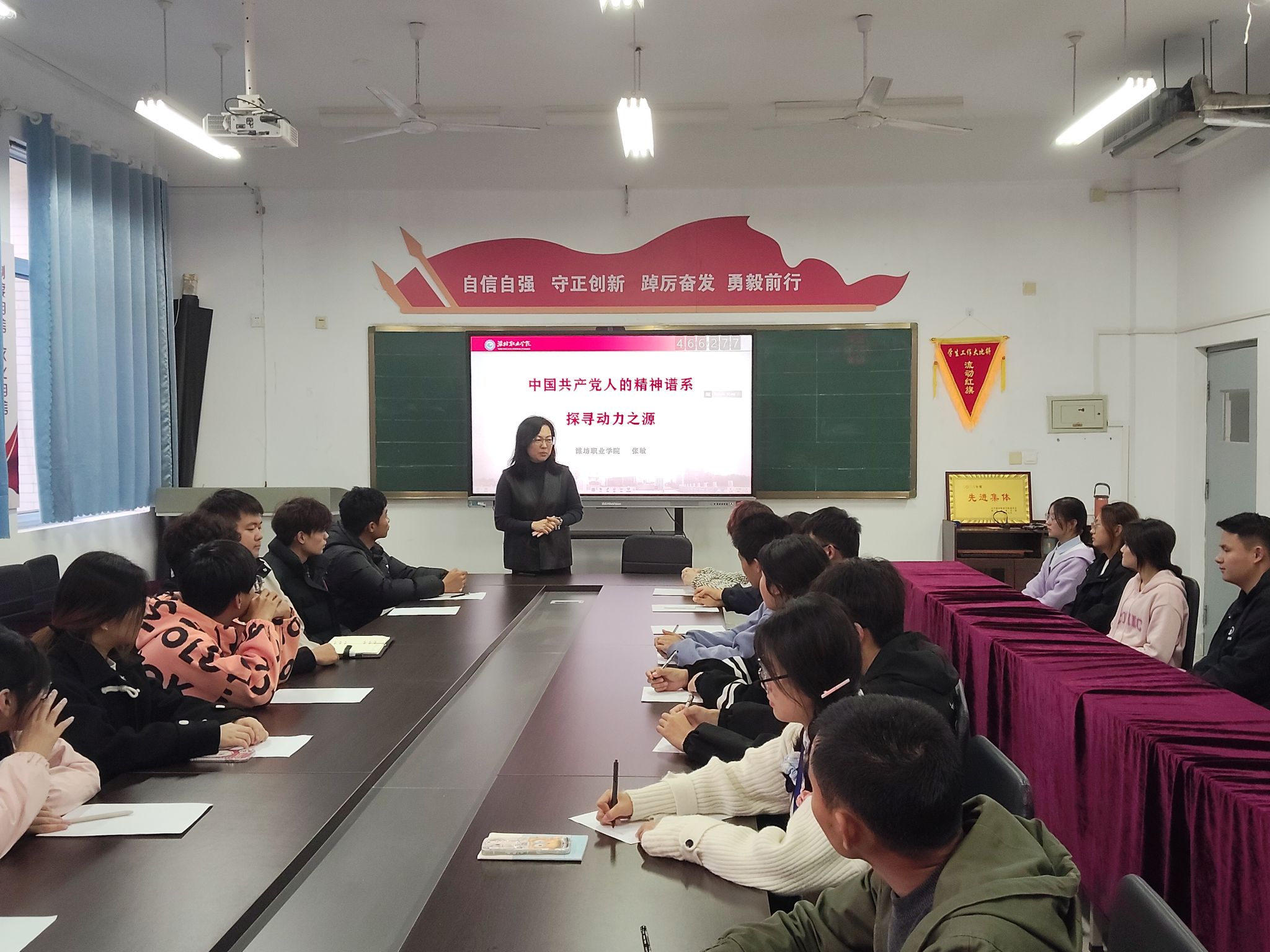 为引导学生深入学习领会中国共产党人精神谱系,传承红色基因,学思践悟,培养具有社会责任感和历史使命感的时代新人。食品药品学院绿竹社区于11月11日开展“学习中国共产党人精神谱系,探寻动力之源”主题教育。在本次活动中,思政导师张敏老师以“学习中国共产党人精神谱系,探寻动力之源”为主题,以伟大建党精神为核心,紧紧围绕坚持真理、坚定信念的信仰精神和践行初心、勇于担当的使命精神,以“05后”学生如何发觉前行动力为目标导向,...更多 -