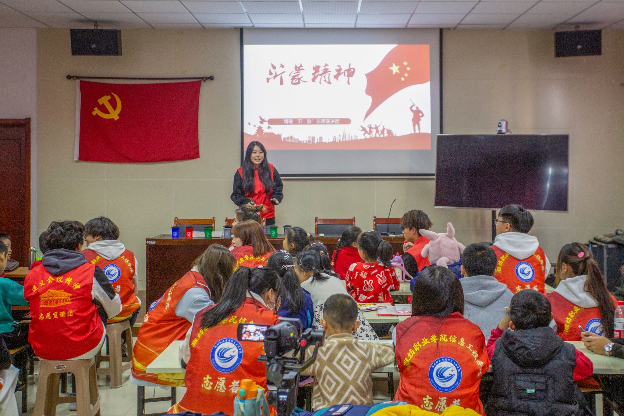 为深入贯彻落实党的二十届三中全会精神,深入学习和宣传中国共产党人的精神,引导青年学生大力弘扬遵义会议精神,延续红色血脉,汲取奋进力量,为推进中国式现代化挺膺担当。11月30日,信息工程学院“逐梦星火,益路先锋”志愿宣讲团前往山东省潍坊市奎文区乐道院社区开展社会实践活动。活动中,宣讲团成员以红军小故事为引,带领小朋友们深入了解遵义会议的历史背景,感受中国共产党人的英勇事迹和坚定信念,并通过提问的方式,引导小朋友们讲出自己认识的中国共产党人以及分享他们的故事。...更多 -