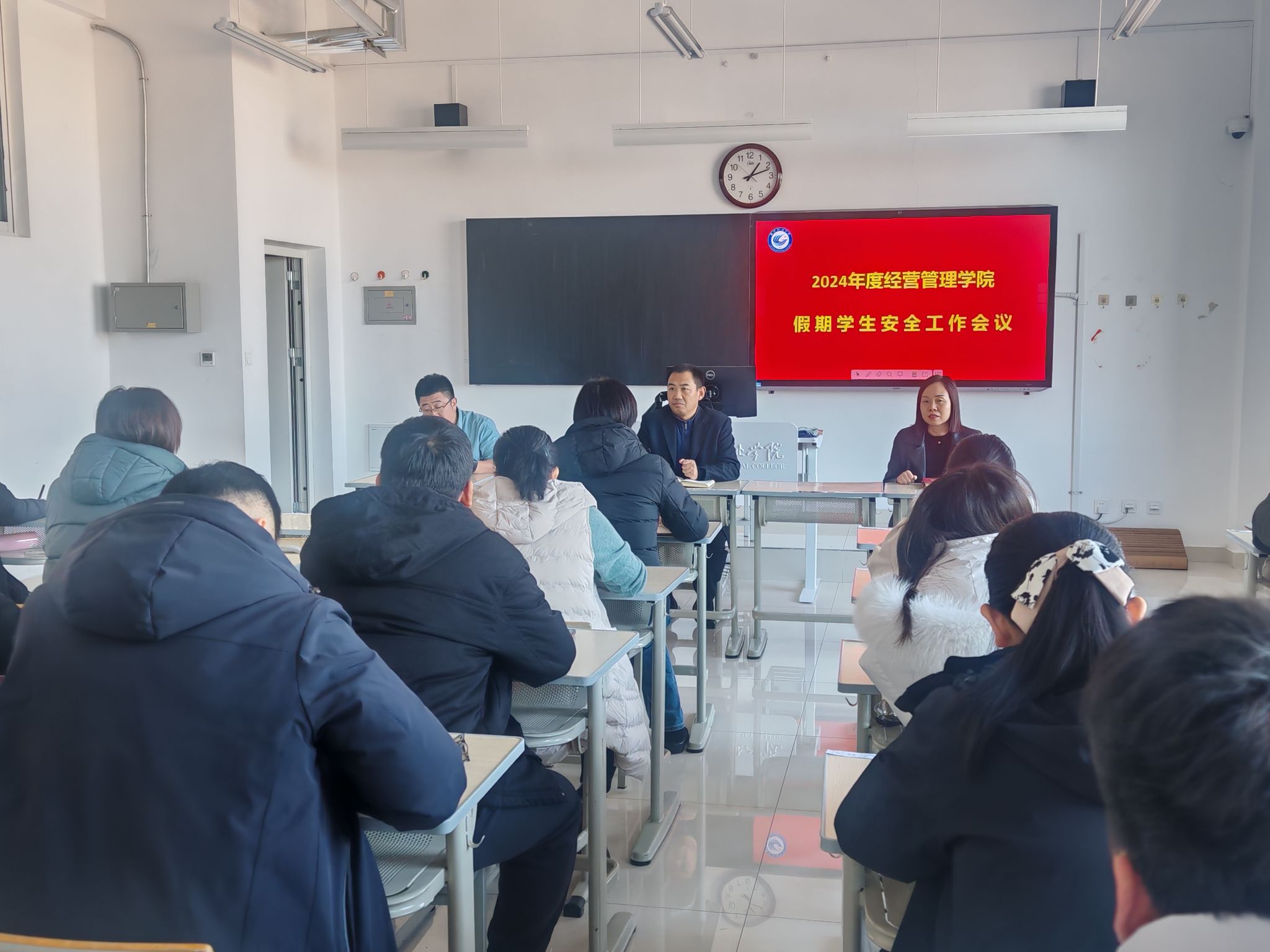 为进一步增强安全防范意识,切实做好假期学生安全防范工作,12月31日中午,经营管理学院在B327教室召开假期学生安全工作会议,经营管理学院党政主要负责同志、辅导员办公室负责人及全体辅导员参加会议。会上,党总支负责同志传达了学院安全工作精神,并对做好学生安全工作提出要求:一是高度重视学生安全工作,召开专题班会,排查校园欺凌、恋爱、学习、就业等隐患,及时发现并解决问题;二是加强安全教育,辅导员需掌握学生假期去向,...更多 -
