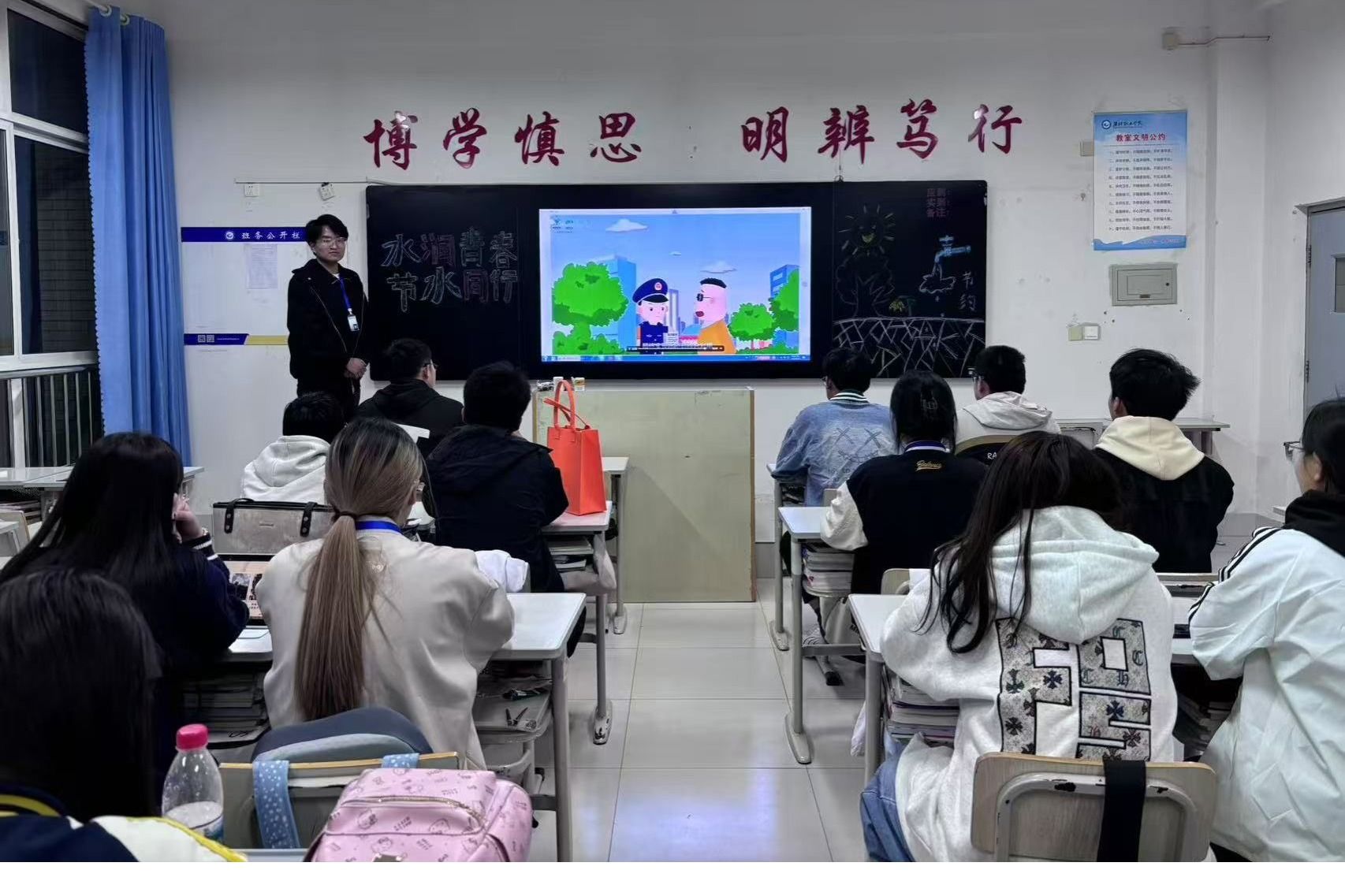 为激发全院师生参与节水的积极性和主动性,增强全院师生的节水意识,在校园内营造节水氛围,3月20日至3月31日,化学工程学院围绕“珍惜点滴,节水护源”主题,开展了一系列丰富多彩的节水宣传活动。活动首先以观影形式拉开序幕,学院组织师生观看了节水主题纪录片,通过直观的影像资料,让大家深刻认识到水资源的珍贵和节水的紧迫性。随后,学院广泛招募节水志愿者,组建了一支充满热情的志愿者队伍,他们积极投身于节水宣传工作中,...更多 -
