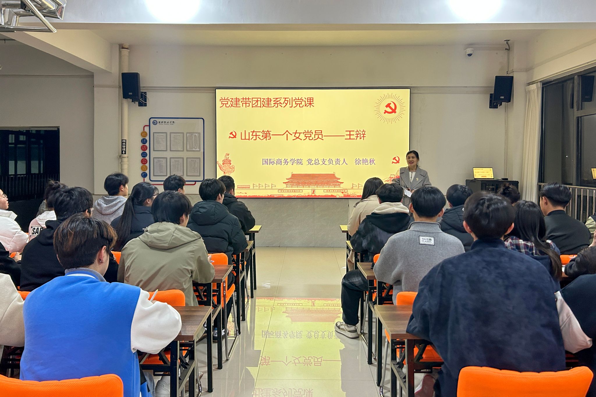 为深入学习贯彻党的二十大精神,充分发挥“一站式”学生社区导师育人作用,进一步强化青年学生的思想政治引领。3月31日晚,国际商务学院党总支负责人走进蕙兰社区,以“红色人物王辩与青年担当”为主题,为师生党员、共青团干部及青年学生代表讲授专题党课。党课伊始,党总支负责人带领师生回顾潍坊籍革命先烈王辩的英雄人生。通过珍贵的历史影像和文献资料,生动展现了王辩从诸城走出,在五四运动中觉醒,成为山东早期妇女运动领导人的光辉历程。...更多 -