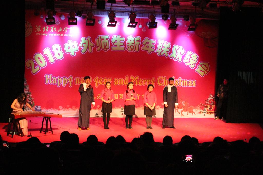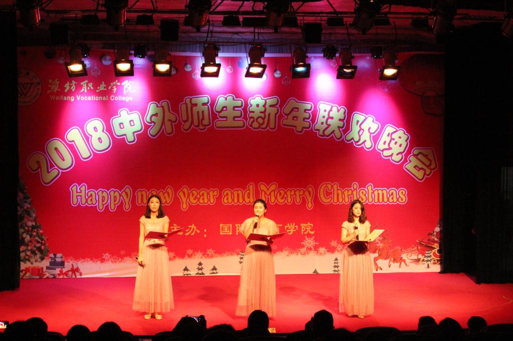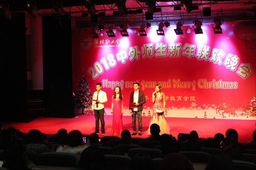 12月24日晚,必赢2018年中外师生新年联欢晚会在奎文校区报告厅举行。学院副院长赵君堂,相关部门、各二级学院负责同志与中外师生500余人欢聚一堂,共度平安夜,喜迎新年。