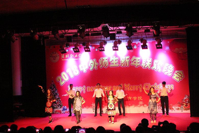 中外师生新年联欢晚会已连续举办了三届,通过晚会促进了中外师生们的沟通交流,增进彼此友谊,营造学院中外学生共融和谐、互促互进的气氛。(郎吉斯供稿)
