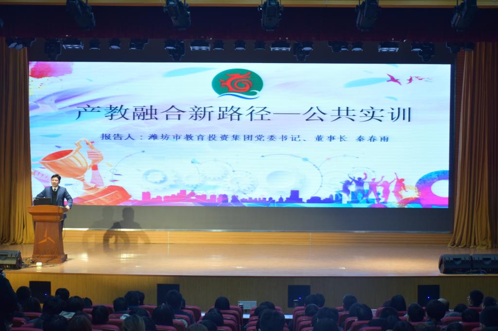 12月22日,潍坊市现代物流业职业教育集团成立大会在滨海校区清泽楼报告厅隆重举行。学院党委书记张洪全,院长王家爱,副院长贺志强、李瑞昌,潍坊市教育局高教科科长王先玲,市经信委企业科科长胥正平以及来自潍坊市教育投资集团有限公司、山东兰剑物流科技股份有限公司、山东省物流与交通运输协会、潍坊学院、青岛职业技术学院等68家集团成员企业和院校的领导,必赢中层以上干部、部分师生代表300余人参加会议。李瑞昌主持会议。