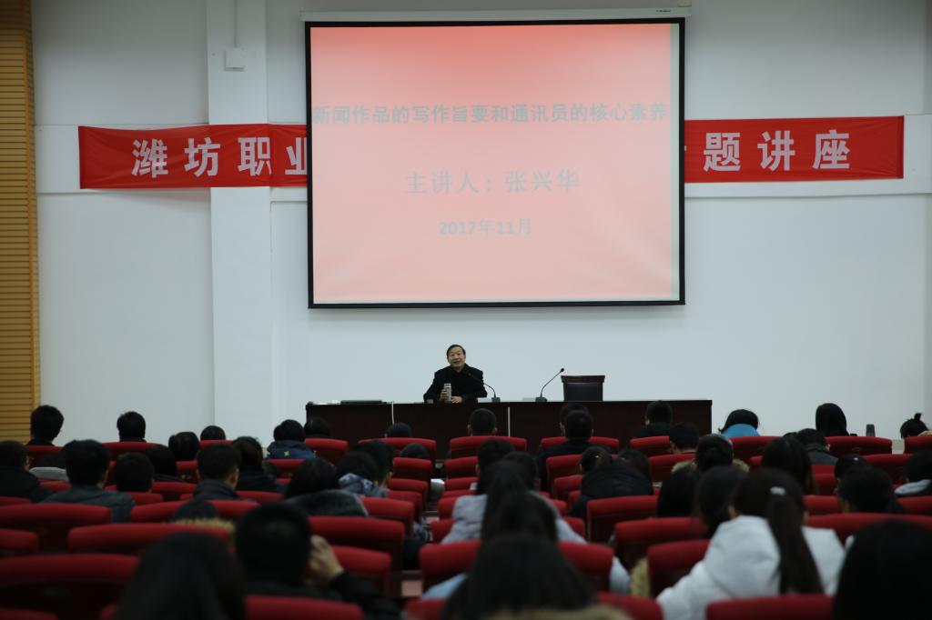 张兴华从一篇新闻作品的诞生需要哪些条件,针对这些条件作为通讯员应练好哪些核心素养和怎样围绕中心工作写出生动活泼的新闻作品三个方面进行了详细讲解,思想深刻,内容丰富,重点突出,讲解生动,理论联系实际,实战性强,对今后做好学校新闻宣传工作具有很强的指导意义,受到广大师生一致好评。