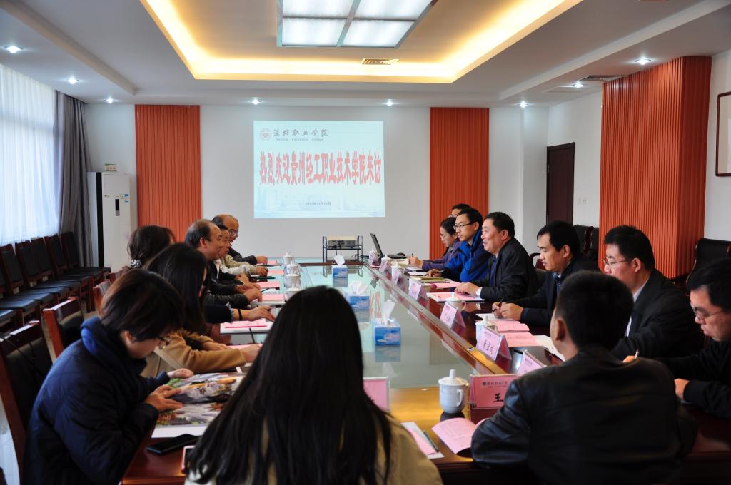11月13日下午,贵州轻工职业技术学院副院长刘天德一行9人来必赢考察交流。学院党委副书记宋桂言在会议室会见客人。组织人事处、学生工作处、基建处、安全保卫处、食品药品学院、化学工程学院相关负责同志参加座谈。
