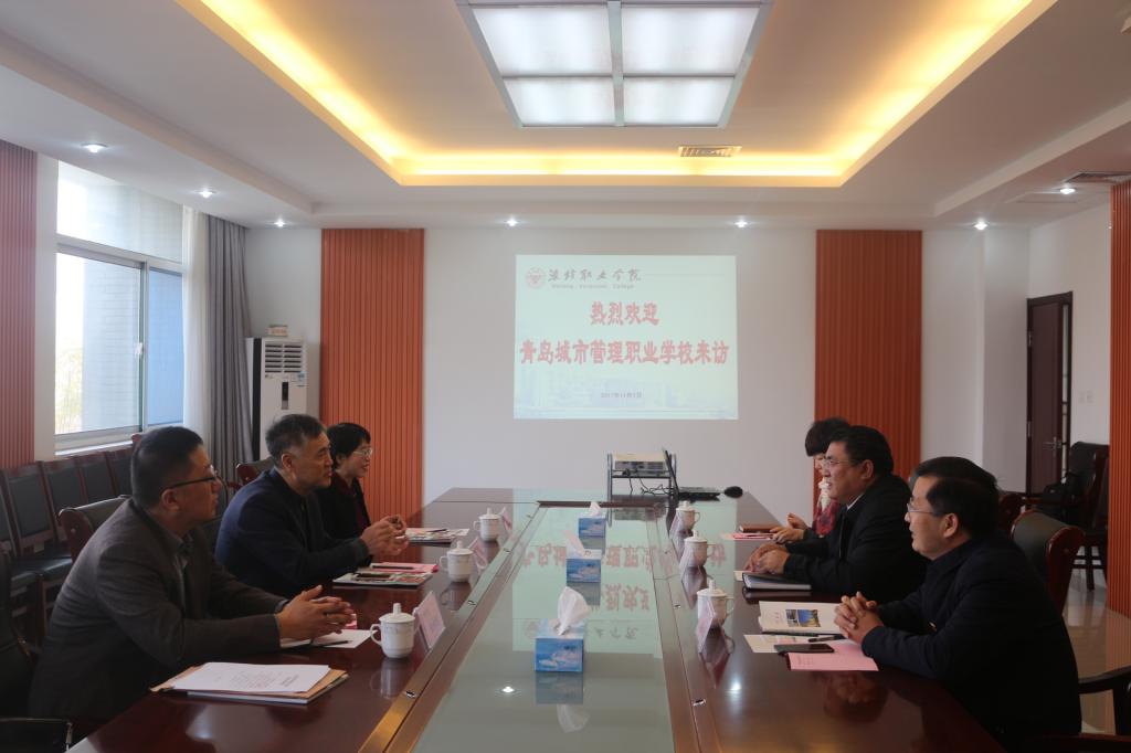 11月7日上午,青岛城市管理职业学校校长赵芳亮,副校长杨淑英一行3人来必赢就合作办学相关事宜进行考察交流。院长王家爱在会议室接见客人。教务处、招生就业处负责同志参加座谈。