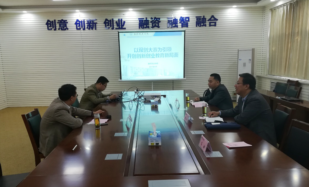 11月1日,淄博职业学院创新创业学院院长胡业冰一行2人来必赢考察交流创新创业工作,招生就业处(创业教育学院)负责人及有关人员在大学生互联网+创业中心109会议室接待了来访客人,并进行了座谈交流。