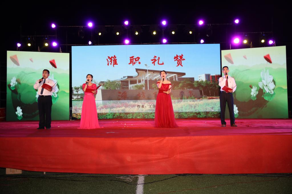 最终,一曲激昂的《阳光路上》唱响了时代强音,召唤青年大学生迎着十九大的朝阳不断向前,为晚会落下帷幕画上圆满句号。整场晚会形式丰富、内容新颖、精彩纷呈,充分展现了潍职学子青春活力、拼搏向上、追寻梦想的精神风貌,表达了学院全体师生对祖国68周年诞辰的祝福以及对2017级新生的美好祝愿。(隋鹏供稿)