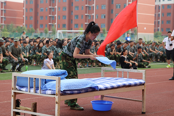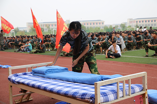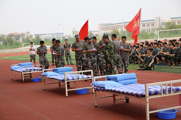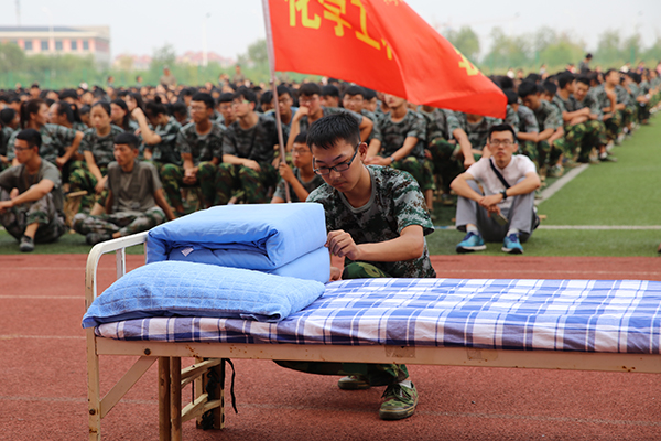 内务整理是最重要军训项目之一。通过内务比赛,不仅让学生对军队内务整理有了深刻的了解,同时学到了内务整理的技巧,培养了同学们良好的生活和行为习惯。(王新培供稿)