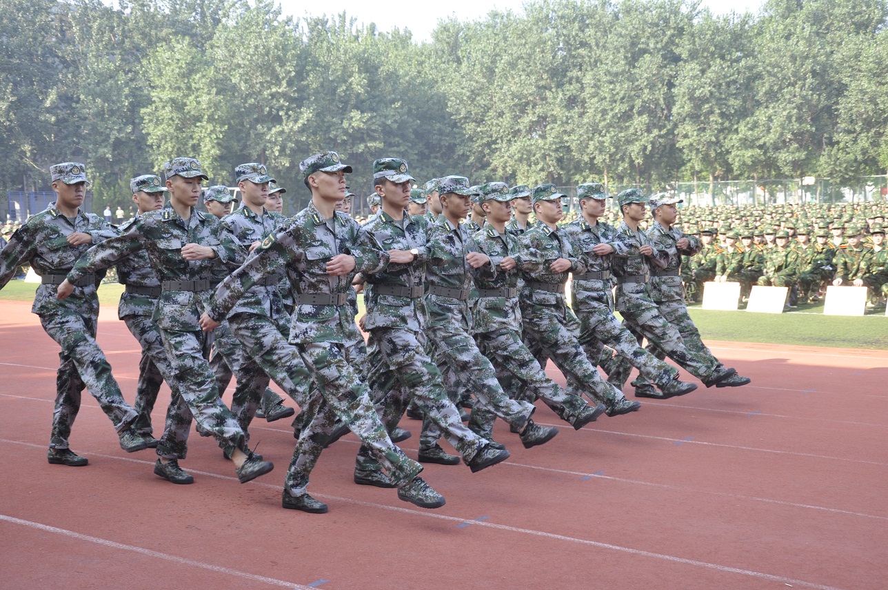军训教官代表、教师代表和新生代表发言。军训教官进行了精彩的示范表演,赢得全体人员此起彼伏的掌声。