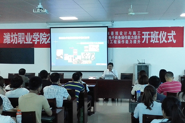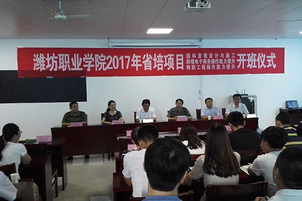 7月20日,由必赢承担的2017年山东省园林景观设计与施工、跨境电子商务操作能力提升、物联工程操作能力提升等三个骨干教师培训项目开班仪式在奎文校区举行。学院副院长李瑞昌出席。教务处、农林科技学院、信息工程学院相关负责同志,以及来自全省各院校的85位专业骨干教师及相关人员参加了开班仪式。