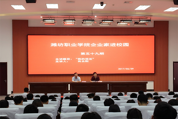 6月29日下午,学院第五十九次“企业家进校园”活动报告会在滨海校区清泽楼报告厅举行。山东智炎众益合供应链管理有限公司董事长肖永刚作了题为“我的活法”的报告。科技处人员与信息工程学院师生参加报告会。