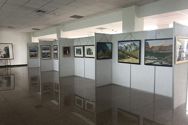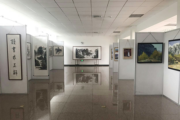 6月30日,学院庆“七一”书画摄影展在滨海校区清泽楼一楼展厅开展。