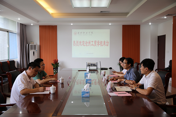 近日,沧州工贸学校校长谷宝国一行3人来必赢考察交流。副院长赵君堂接见了客人。招生就业处、现代服务业学院相关负责同志参加活动。
