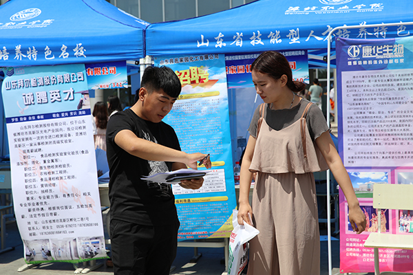 本次招聘招商会以“搭就业台、筑创业梦、创活力城”为主题,吸引了700余家行业企业单位参会,济南、青岛、烟台、威海、淄博、潍坊以及北京、上海、天津、河南等地的省外用人单位,特别是潍坊滨海开发区企业更是抢抓机遇招贤纳士,其中不乏魏桥集团、平安人寿、海信电器、北汽福田、方舟机电、神宇机械、鲁南制药、志诚动漫、吉润纳米、阳春乳业、正大农业、东昌化工等大中型企业,参会单位提供各类岗位数量达30000余个,主要面向驻潍高校毕业生以及准备参加顶岗实习学生,参会学生人数达万人,当天共有6000名学生和用人单位达成了初步就业意向。潍坊美丽华国际幼儿园负责人说:“今年学前教育专业学生特别紧俏,我们抢前提早想来招聘20名幼儿教师,可是只招了15名学生,现场看到还有济南、青岛和济宁的幼儿园来校招聘,看来随着国家放开二孩政策和对学前教育的重视,学前教育专业人才将进入空前火爆的局面。”