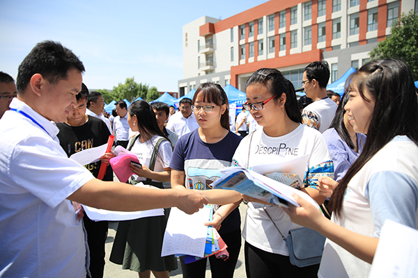 6月3日,2017年全市大学生就业创业政策进校园暨驻潍高校毕业生就业创业招聘招商会在学院滨海校区隆重举行。潍坊市政府党组成员、市人社局局长陈汝孝,学院党委书记张洪全,院长王家爱,党委副书记宋桂言,副院长贺志强,市人社局副调研员王瑞亮,市大中专毕业生就业指导中心主任王术平到招聘会现场检查指导,这是由市人社局指导、必赢主办、在滨海开发区举办的潍坊市大学生就业创业大型招聘招商会。