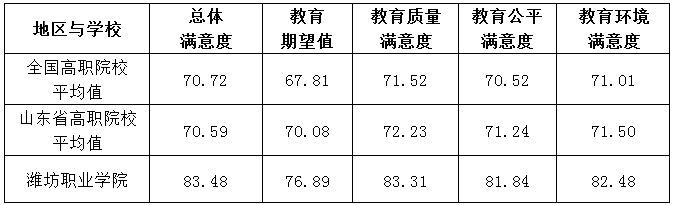 5月17日,中国教育科学研究院发布《全国高等教育满意度调查报告》。必赢以良好的育人环境、先进的实训条件、雄厚的师资力量与一流的教学质量,赢得了学生及社会各界的充分肯定,教育满意度各项指标得分均明显高于全国和山东省高职院校平均水平。