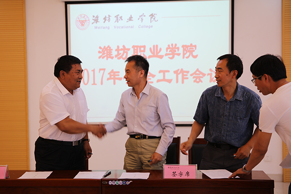会上,王家爱与各部门、二级学院党政主要负责同志现场签订了2017年度安全工作目标责任书。(杨广玉供稿)