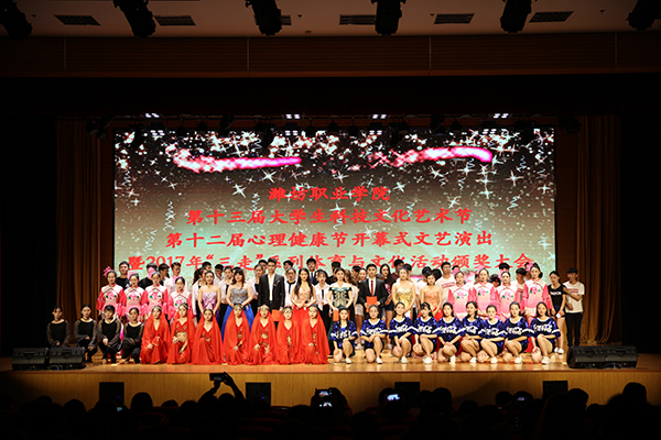 5月11日晚,学院第十三届大学生科技文化艺术节、第十二届心理健康节开幕式暨2017年“三走”系列体育与文化活动颁奖晚会在学院滨海校区图书馆报告厅举行。学院党委副书记宋桂言出席。各二级学院(部)党支部书记、分管学生工作负责同志、团总支书记以及各二级学院(部)学生代表参加并观看演出。