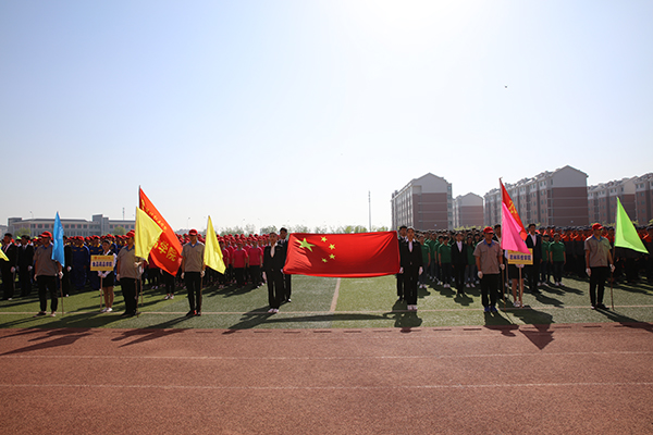 伴随着激昂的运动员进行曲,国旗队、彩旗队、裁判员队及各代表队依次入场。一支支队伍迈着整齐有力的步伐走过主席台,展现出潍职师生奋发昂扬的崭新姿态。