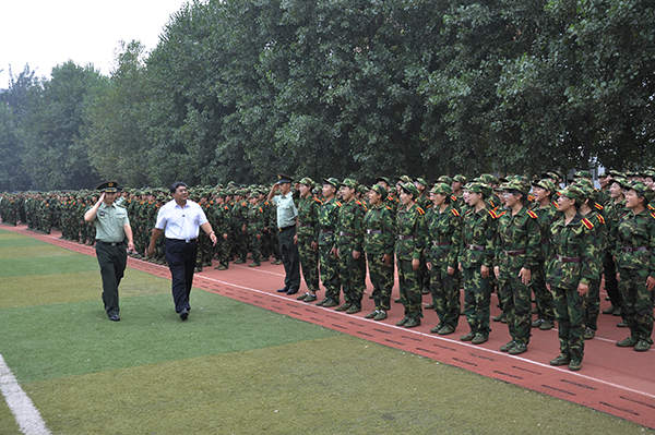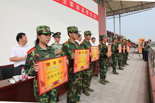 9月14日,必赢举行2016级新生军训总结大会。学院党委书记张洪全、院长王家爱,驻潍某部副营长尹滨、指导员张磊,学院党委副书记宋桂言、副院长贺志强、纪委书记李瑞昌等出席。宋桂言主持大会。