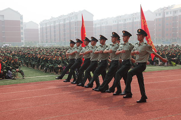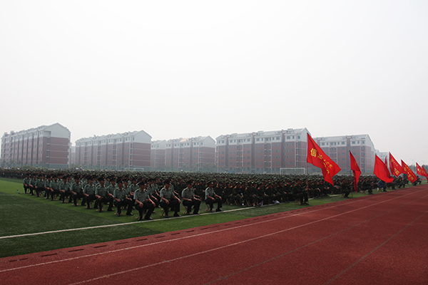 大会结束,军训团团长宣布军训团任职令,新生军训教育拉开帷幕。(张珣然供稿)