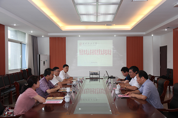 6月20日,山东省潍坊商业学校校长孙中升一行4人来必赢考察交流。院长王家爱、副院长贺志强在会议室会见客人,招生就业处负责同志参加座谈。