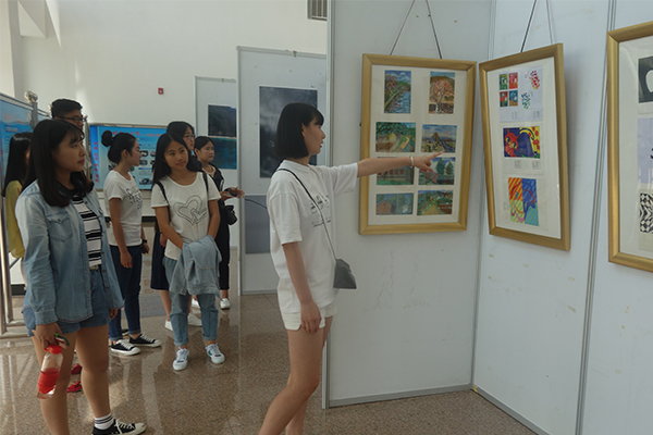 书画摄影艺术作品展区人潮涌动,参观师生络绎不绝。展览以“大美滨海、魅力潍职”为主题,集中展示了学院师生创作的200余幅优秀作品。作品涉及书法、国画、油画、水粉、素描、剪纸、摄影、手工制作等多种表现形式,题材丰富,精彩纷呈,多角度展现了师生精湛的书画艺术和手工技艺,是学院文化创意和学前教育专业办学成果的集中展示,他们用不同的艺术形式诠释着生活之美、艺术之美。