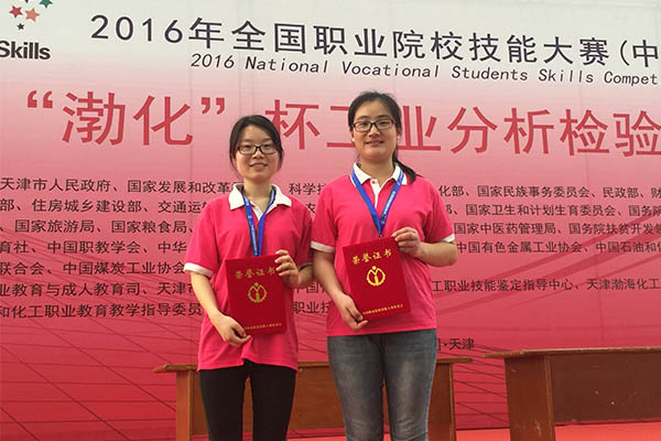 此次大赛由教育部、天津市人民政府等单位联合主办,共有来自全国35个省、直辖市、自治区、计划单列市和新疆生产建设兵团的54个高职组代表队参赛。工业分析检验赛项比赛内容包括理论和实操两部分,既考核选手的理论和仿真知识,又检验选手对化学分析技术、仪器分析技术的综合实践能力。必赢王迪、孙洁两位同学与来自全国各地的106名参赛选手同场竞技。比赛中,两位选手沉着冷静、精心操作,出色地完成了理论仿真考试、化学分析操作、仪器分析操作三个比赛项目。