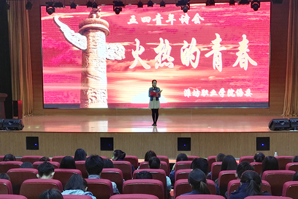 4月22日,为纪念“五四”青年节,进一步弘扬“爱国、进步、民主、科学”的“五四”精神,学院语委在滨海校区图书馆报告厅举办了主题为“火热的青春”的纪念“五四”青年诗会。