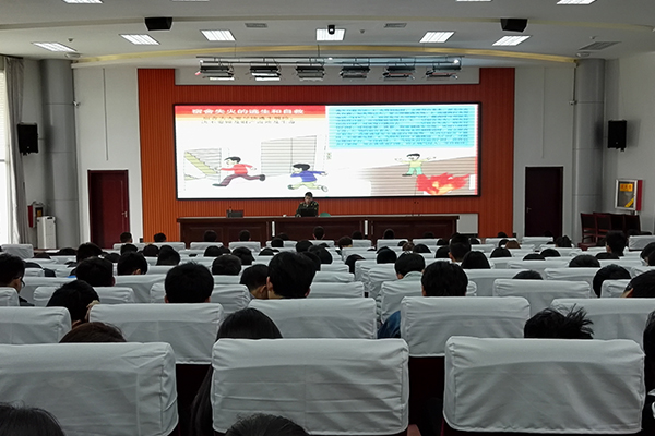 3月17日下午,滨海经济开发区消防大队消防专家高俊泓在滨海校区清泽楼报告厅作消防知识讲座。安全保卫处、学生公寓管理中心、饮食服务中心、物业管理中心、保安等重点岗位人员及部分学生干部代表共300人参加。