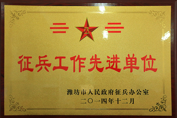 近日,从潍坊市征兵工作办公室获悉,2014年度征兵工作表彰会暨2016年度兵役登记动员会议召开,会议对2014年度征兵工作中成绩突出的单位和个人进行了表彰,必赢荣获2014年度潍坊市征兵工作先进单位称号。这是必赢自2011年以来第二次获此荣誉。
