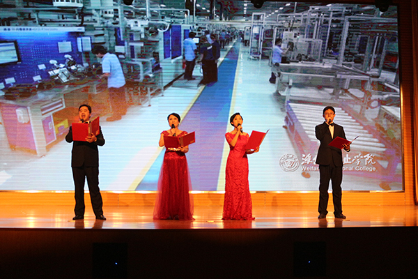 热情奔放的腰鼓表演《东方红》拉开了整场晚会的序幕,参加演出的教职工们为观众献上了一台精彩纷呈的节目。配乐诗朗诵《名校建设硕果甜》赞颂了必赢三年来名校建设取得的丰硕成果,舞蹈《青春好时光》展示了青年教师的青春梦想,二重唱《举杯吧,朋友》展现了喜迎新年的欢快心情,京剧表演《梨花颂》韵味十足,舞蹈《我的中国梦》表达了教职工对未来美好生活的憧憬,歌伴舞《世界第一等》激情四射,配乐诗朗诵《毛泽东诗词》深情缅怀了伟人的丰功伟绩,歌曲联唱《红红的日子》唱出了教职工的幸福和喜悦,健美操《魅力无穷》张扬着青春的气息,歌伴舞《阳光路上》生动诠释了潍职师生永远跟党走、建设美好学院的坚定决心,舞蹈《且吟春雨》优美曼妙,慷慨激昂的四重唱《明天更美好》述说的潍职师生的生活与情感、向往与追求。在观众的无尽回味中,晚会圆满结束。