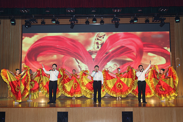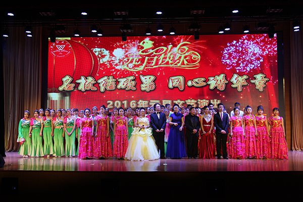 12月31日下午,学院“名校结硕果,同心谱华章” 教职工2016年元旦文艺演出在图书馆报告厅举行。院长王家爱等学院领导观看演出,与教职员工欢聚一堂,共度美好节日。