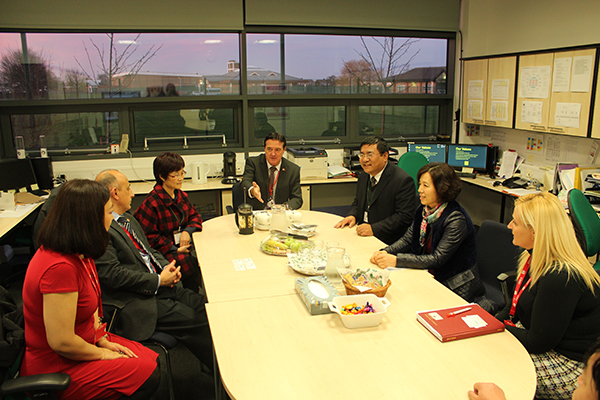 王家爱一行参观访问了斯托克顿河畔学院的比德校区。校区负责人瑞克•威尔斯介绍了校区建设情况、教学设施、师资配备情况及人才培养成绩等,重点介绍英国A-Level教育体制,学校开设的数学、计算机、媒体、艺术、生物科学等学科的情况,并陪同参观了教学实验室。学校人性化的设计、整洁的环境、先进的教学设施、学生的创新意识、动手能力及师生丰富的教学成果展示等给大家留下了深刻的印象。访问期间,学校董事会主席史蒂夫.科森接见了王家爱院长一行,并就争取双方政府支持,推进两校广泛合作进行了深入探讨。