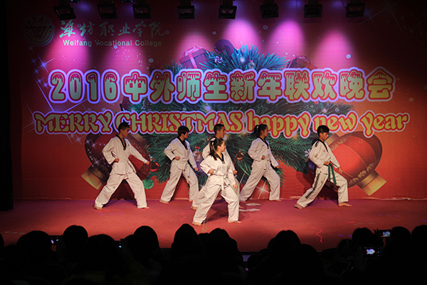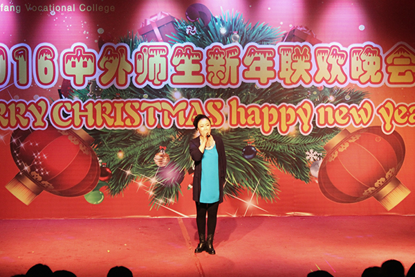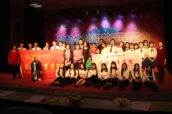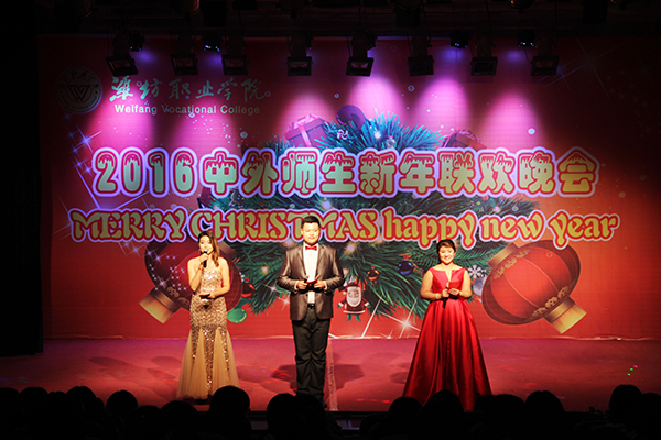 12月23日晚,2016中外师生新年联欢晚会在奎文校区报告厅举行。国际交流与合作处、团委学生工作处、国际商务学院、中专部相关负责同志及中外师生500余人观看了演出。