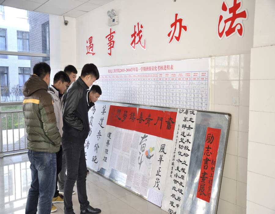 多彩的板报,文化的符号。各二级学院大学生以我为名校添光彩为动力,积极探索尝试,创新宣传形式,发挥才智自主设计,把贴近学生生活、融入时代特色、弘扬传统文化的小小板报办得风生水起:一则天气预报,一条时政要闻,让同学们知冷暖,观时事;一首应景的小诗,一幅优美的图画,让同学们驻足欣赏,拍照留念;一句激励人的名言,一则感人的好事,令同学们品评一番,啧啧点赞;让这片思想教育阵地重新焕发出新的生机与活力,成为广大学生积累丰富知识,培养合作精神,提高审美能力,传承优秀传统文化的展示平台。