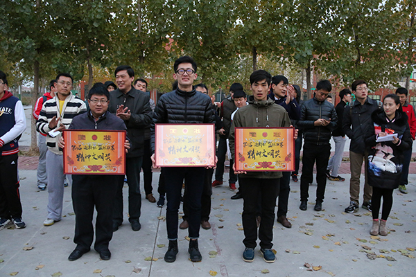 闭幕式上,团委学生工作处、通识教育中心主要负责同志为获奖代表队颁发冠、亚、季军奖杯和奖状。经营管理学院、汽车工程学院、园林工程学院获得本次校园篮球联赛的优秀组织奖,师范/文化创意学院、信息工程学院、机电工程学院获得本次校园篮球联赛的精神文明奖。(孔令香供稿)